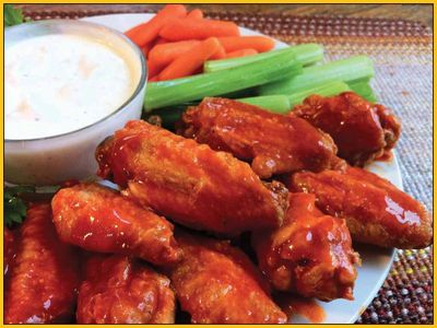 On Monday, we also offer our jumbo Chicken Wings for just $7.99 (save $4.00). The wings come coated in one of our specialty sauces, including traditional, buffalo, extra hot, BBQ, bourbon, sweet fire or teriyaki and are served with carrots, celery and choice of dressing.